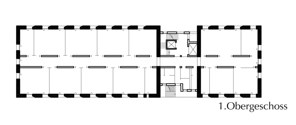 Das Gebäude (52 x 15,20 Meter) besitzt insgesamt fünf oberirdische Geschosse. Das Vierte ist etwas zurückgestaffelt, um Platz für eine Dachterrasse mit besonderer Atmosphäre zu schaffen und das ansonsten kompakte Erscheinungsbild optisch aufzulockern. Dazu leistet auch der relativ mittig und gegenüber der Fassade zurückgesetzt angeordnete Erschließungskern mit Eingangsbereich, Treppenhaus, Aufzügen und Sanitäranlagen einen essentiellen Beitrag. Er verbindet den größeren südlichen Gebäudetrakt mit dem kleineren nördlichen Teil. Diese Struktur zieht sich vom Erdgeschoss aufwärts durch alle Geschosse. Zusätzlich verfügt das Bürohaus über zwei Tiefgaragen mit insgesamt 68 Pkw-Stellplätzen. Die nutzbare Bürofläche verteilt sich derweil auf insgesamt neun Büroeinheiten, die in Größe und Zuschnitt der einzelnen Räumlichkeiten variieren und so unterschiedliche Nutzeransprüche erfüllen.