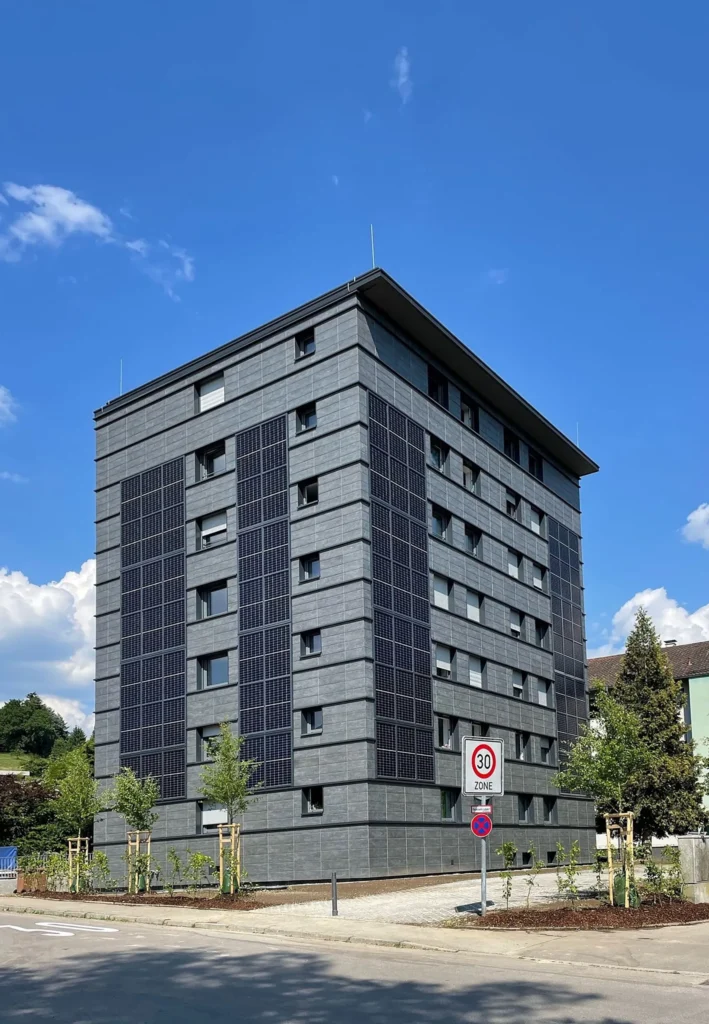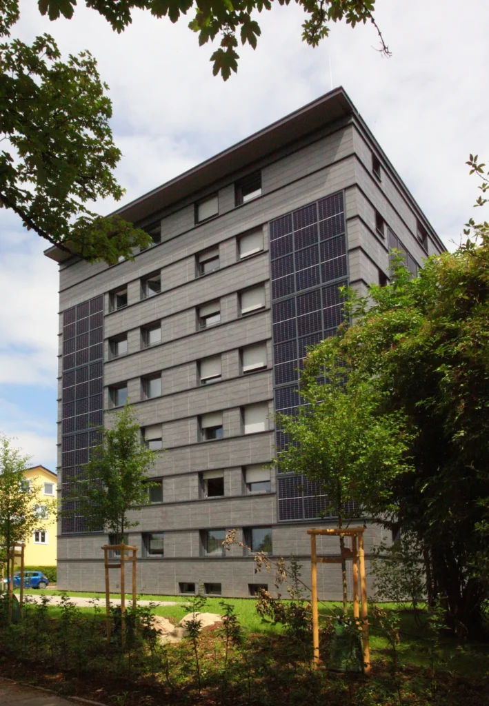 Außergewöhnliche Modernisierung im Bereich des sozialen Wohnungsbaus: In Lindau am Bodensee wurde jetzt ein in die Jahre gekommenes Wohnheim umfassend renoviert und erweitert. Die neue Fassade besteht dabei aus im Wechsel angeordneten TONALITY®-Keramik- und Photovoltaikelementen. Durch die Gebäudeerweiterung und die neue Fassade wirkt das Gebäude jetzt klar strukturiert, gepflegt und modern. Das Besondere dabei: In einem intensiven Abstimmungsprozess erarbeiteten die Bauherrin GWG Lindauer Wohnungsgesellschaft mbH und Leipfinger-Bader die besondere Schieferoptik der Keramikelemente, die dann individuell für dieses Projekt produziert wurden.
