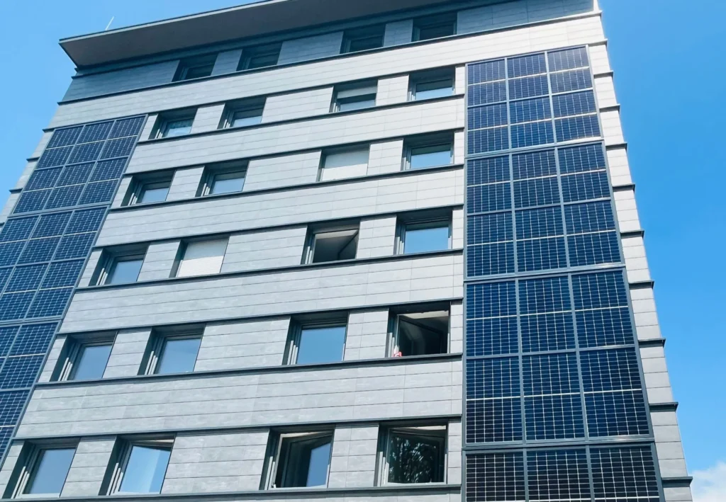 Auch die Fassade des Gebäudes wurde vollkommen umgestaltet und setzt die Modernisierung und Aufwertung im Inneren nach außen fort. Sie wirkt nun modern, gepflegt und klar strukturiert. Zudem fügt sich das Wohnheim trotz seiner Größe unauffällig in die bebaute Umgebung ein. Optisch auffällig an der Fassade ist das Wechselspiel zwischen den Photovoltaikmodulen und den Elementen der vorgehängten hinterlüfteten Fassade (VHF). Letztere stammt dabei aus dem Hause Leipfinger-Bader mit TONALITY®-Fassaden. Das Traditionsunternehmen ist spezialisiert auf vorgehängte hinterlüftete Keramikfassaden. Die hochwertigen Rohstoffe für die High-End-Keramik werden dabei regional im Westerwald gewonnen. Auch die Produktion erfolgt direkt vor Ort. Bei der Lindauer Sanierung fiel die Wahl aufgrund der besonderen Beschaffenheit des Untergrundes auf ein sehr leichtes Keramikelement. Während eine Dicke von 26 Millimetern grundsätzlich als Standard gilt, kamen in Lindau Elemente mit einer Dicke von nur 22 Millimetern zum Einsatz. TONALITY® lieferte diese in zwei verschiedenen Formaten: 300 mal 1000 Millimeter und 300 mal 1200 Millimeter. Beide Größen wurden im Wechsel horizontal an der Fassade montiert. Zu berücksichtigen ist auch das geringe Gewicht der Fassadenbekleidung von unter 30 kg/m², wodurch weniger Kräfte auf das Sanierungsobjekt wirken.