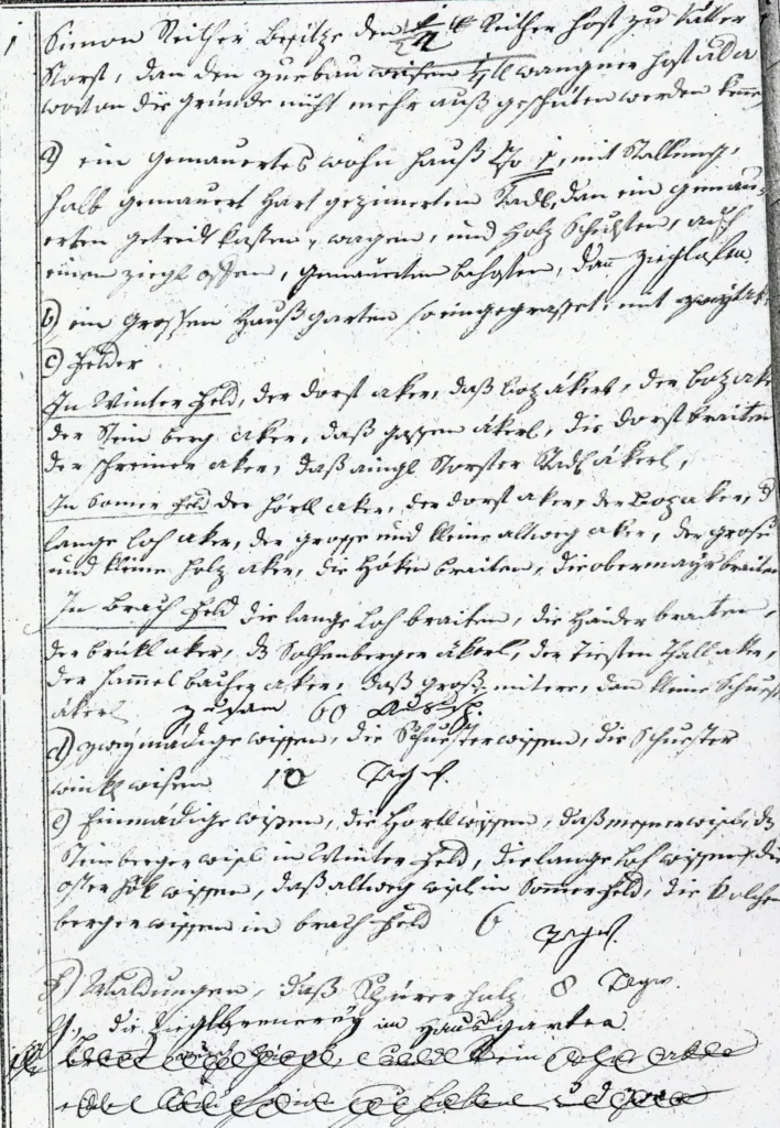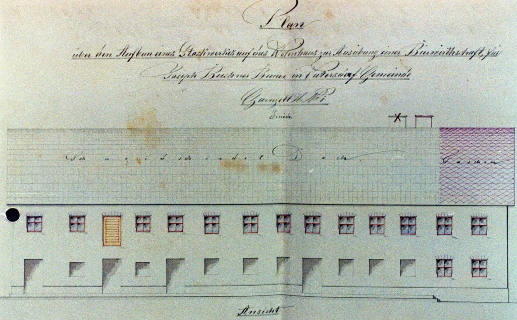 Nieruchomość z numerem domu 1 w dzisiejszej dzielnicy Vatersdorf w gminie Buch am Erlbach jest po raz pierwszy wymieniona w Fassion, wstępnej formie dzisiejszej księgi wieczystej, jako murowany dom ze stajniami i ceglanym piecem w przydomowym ogrodzie.