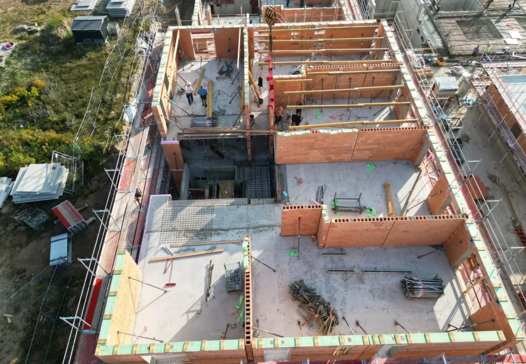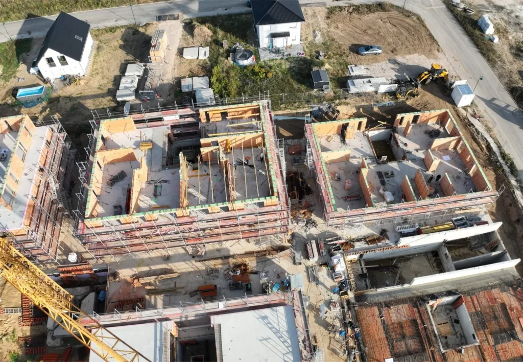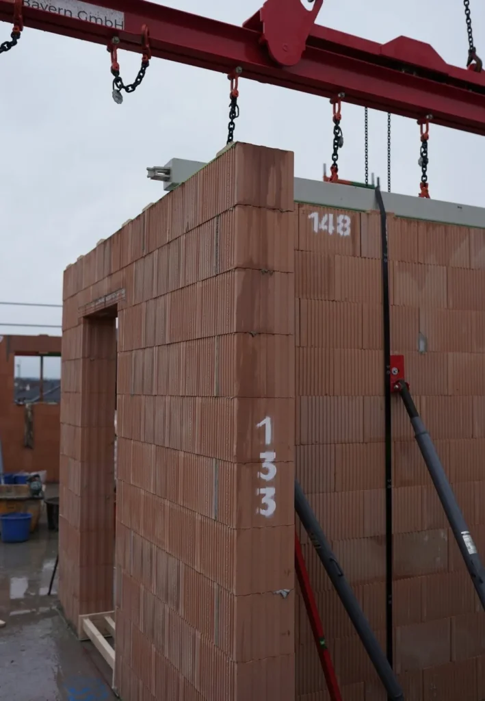 Kolejną zaletą, zarówno na etapie planowania, jak i budowy, było zastosowanie inteligentnych prefabrykatów. Do budowy kompleksu mieszkalnego wykorzystano ceglane elementy ścienne firmy Leipfinger-Bader. Pozwoliły one na swobodę planowania, a dzięki prefabrykacji umożliwiły znaczną oszczędność czasu na etapie budowy. Po zaledwie trzech miesiącach budowy stan surowy został ukończony pod koniec 2023 roku. Elementy ścienne umożliwiły również precyzyjne obliczenia ilościowe i materiałowe. Skrócony czas budowy zaowocował również zauważalną redukcją kosztów w porównaniu z konwencjonalnymi metodami budowy brył.